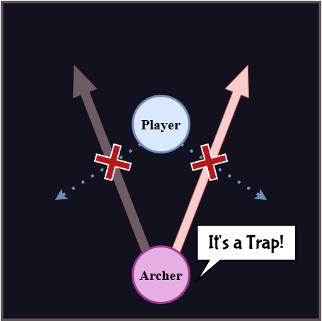 The Archer shoots an arrow to a random side, perpendicular to its direction to the player.